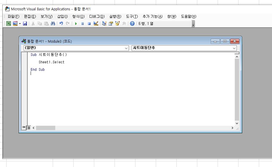 여기에서 "시트이동단추"는 모듈의 이름이 된다.