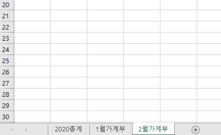 아래와 같이 시트 이름을 설정한 엑셀 파일에 있어서 첫번째 시트인 "2020총계"로 이동하는 단추 만들기를 알아보도록 한다.