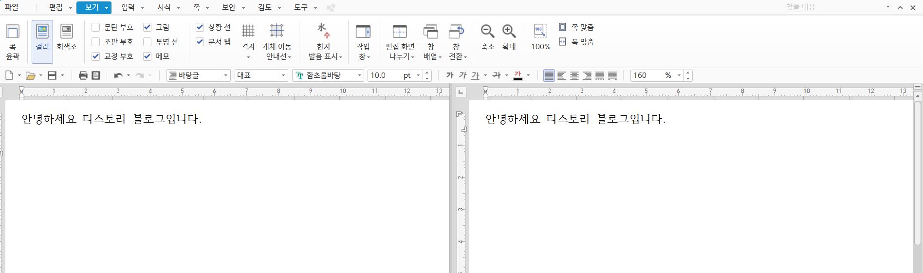 한글 문서 편집을 하다보면 앞부분의 내용을 확인하면서 뒷부분을 작성해야 하는 경우가 발생한다.