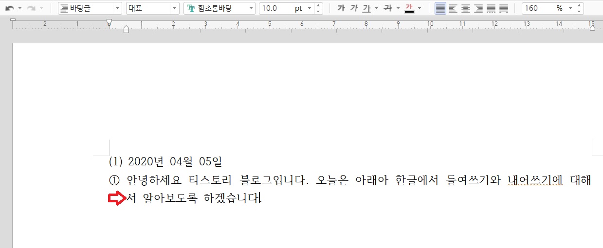 아래아 한글 문단모양 바꾸기, 들여쓰기, 내어쓰기 설정하기