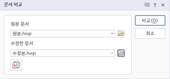 문서 비교를 클릭하면 아래와 같은 창이 나타나며, 여기에 비교하고자 하는 파일을 아래와 같이 선택하면 된다.